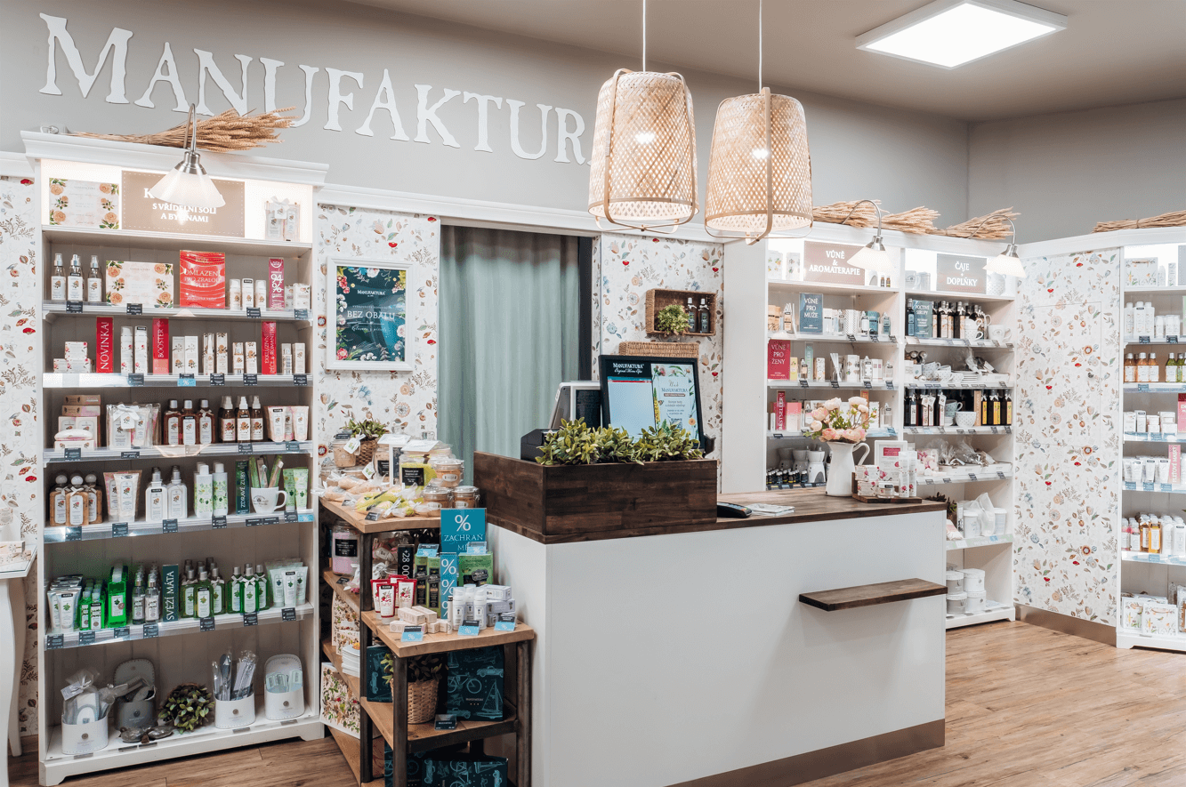 MANUFAKTURA je unikátní 100% český koncept značkových prodejen s vlastní originální kosmetikou a doplňky pro jedinečné domácí lázně. Proč vlastně domácí lázně..? Žijeme v uspěchané době plné stresu, napětí a shonu. Příjemný rituál domácích lázní se zapálenou svíčkou, vonnou lázní, osvěžující sprchou, masáží, šálkem čaje či jiným hýčkáním napomůže odpoutat se od denních problémů, dosáhnout fyzické a psychické úlevy a na chvilku si zkrátka odpočinout. Originální a vysoce kvalitní receptury výrobků využívají příznivých účinků tradičních českých přírodních ingrediencí - českého piva a chmelových výtažků, karlovarské vřídelní soli, vína a výtažků z révy vinné, meruněk, švestek a jiného ovoce a bylin typických pro naši krajinu. Atraktivní doplňky pro domácí lázně - čaje, svíčky, masážní pomůcky, porcelán atd. jsou vyráběny na zakázku ve spolupráci s tradičními, kvalitními českými výrobci.