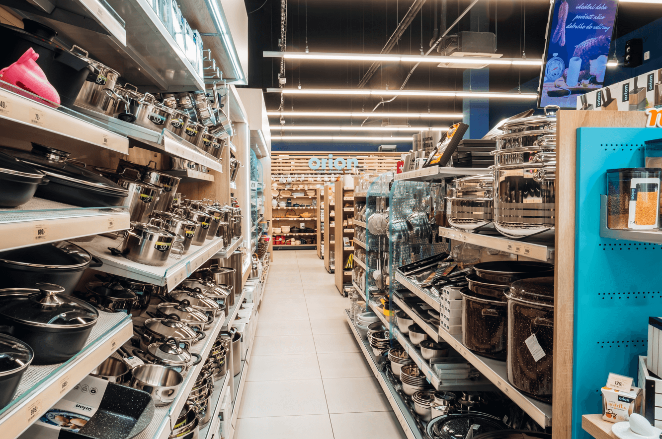 ORION nabízí široký sortiment více než 3.000 položek ze sortimentu domácích potřeb. Snažíme se zákazníkovi nabídnout ucelený sortiment domácích potřeb včetně značkového nádobí a kuchyňského náčiní vysoké kvality v souladu se současnými trendy v gastronomii. K dostání jsou výrobky od renomovaných českých i zahraničních výrobců. Najdete u nás řady nádobí vyrobeného nejmodernějšími technologiemi, velice kvalitní tlakové nádobí, nádobí s nepřilnavým povrchem pro zdravé vaření, řady vícevrstvého nerezového nádobí, silikonové formy na pečení atd. Nabízíme zboží do kuchyní, obývacích místností, koupelen, pro snadnější úklid Vašeho domova, do zahrad… Vše za skvělé ceny. Celoročně připravujeme zajímavé akční nabídky.