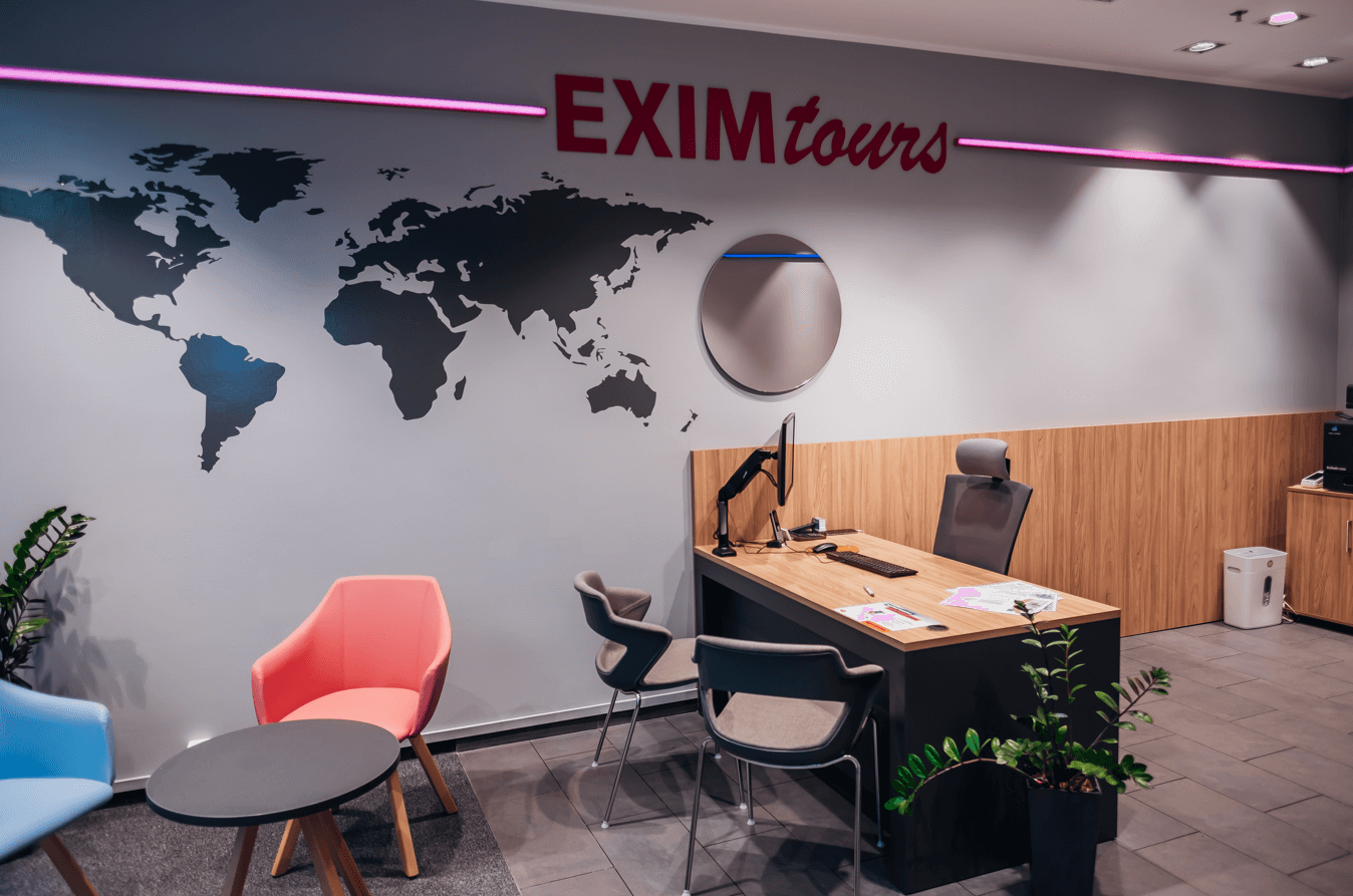 EXIM tours, jedna z nejsilnějších a nejznámějších značek na trhu cestovního ruchu, poskytuje komfortní dovolenou, která je dostupná pro každý rozpočet. Při zachování vysoé kvality služeb a nadstandardní úrovně ubytovacích zařízení nabízí výhodné ceny zájezdů, na které dosáhnou mladé páry, rodiny s dětmi, senioři i jednotlivci. V nabídce EXIM tours je však i luxusní dovolená pro nejnáročnější klienty. Všechny hotely jsou pečlivě vybírány na základě mnohaletých znalostí místních poměrů a ve spolupráci s osvědčenými zahraničními partnery.
