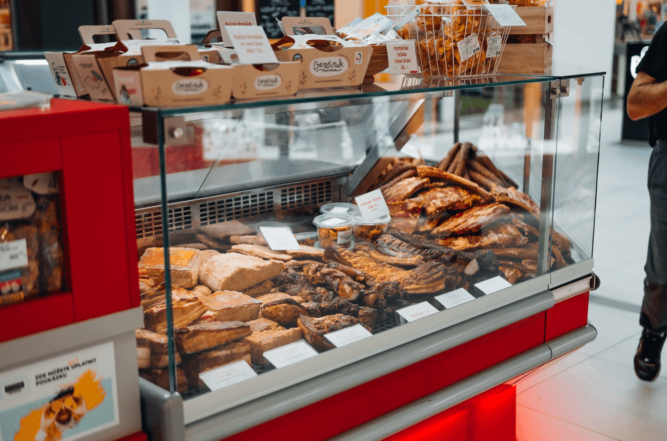 Sýry, lyofilizované sýry, ovoce, džemy, sirupy, medy, hořčice, pro příznivce pálivých produktů nabízíme pestrou nabídku chilli omáček a sušeného chilli, dárkových kazet Chillidoctor, rajčata z farmy Bezdínek, nejrůznější pochutiny.