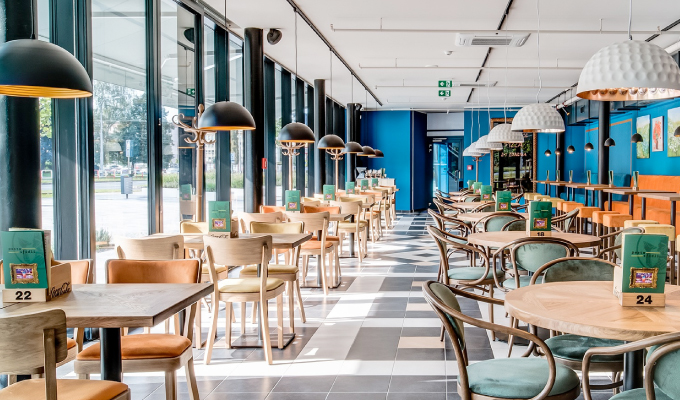 Restaurace se zaměřením na Celosvětovou kuchyni přes denní obědové menu a středomořskou kuchyň À la carte Pizza, Pasta, Rizota, Saláty, Masové pokrmy, Dezerty, Bezbarierový přístup